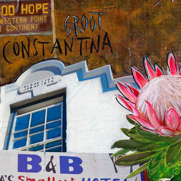 Vorschläge und gehören nicht zum Leistungsumfang. Bilderrahmen und Dekorationen sind Wohnbeispiele. Die Kapstadt-Original-Collage in 100 x 100 cm ist noch verkäuflich (siehe unter Originale).