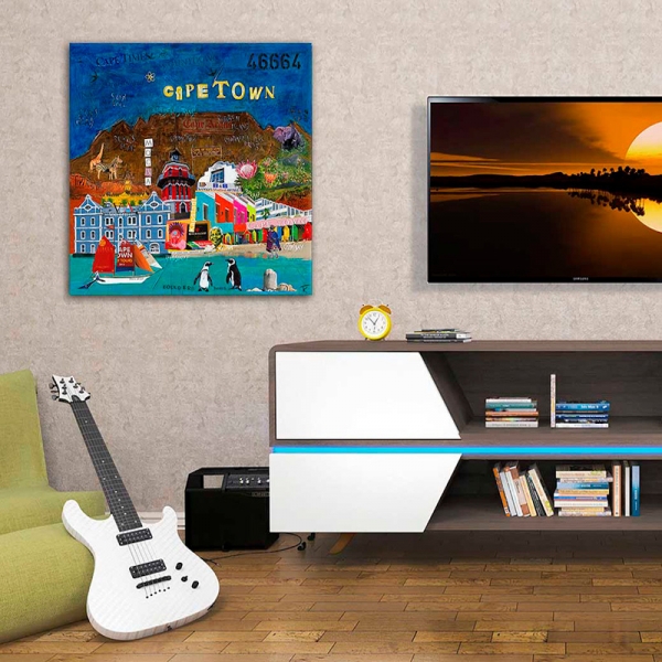 Bei akutem Fernweh nach Kapstadt hilft dieser Kunstdruck. Denn er holt die bunte Faszination dieser südafrikanischen Stadt direkt in Ihr Wohnzimmer! Auch als Geschenkidee für Südafrika-Fans und Kunstfreunde eignet er sich ideal.